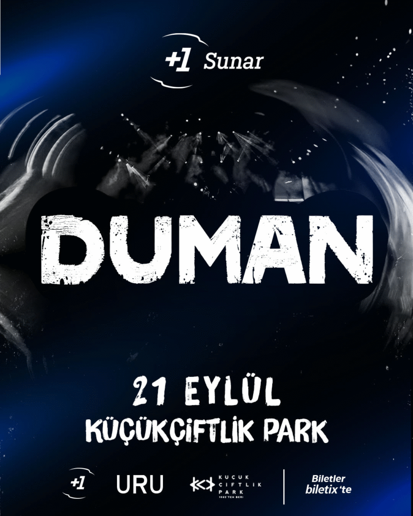 Türk rock müziğinin öncü gruplarından Duman, 21 Eylül 2025 Pazar akşamı KüçükÇiftlik Park’ta hayranlarıyla buluşmaya hazırlanıyor. Yaz başında gerçekleştirdikleri unutulmaz konserin ardından, grup efsaneleşmiş Belki Alışman Lazım, Senden Daha Güzel, Kufi ve Bu Akşam gibi şarkılarıyla yeniden sahneye çıkacak. Bu özel performansı kaçırmak istemeyenler için konser biletleri Biletix üzerinden ve KüçükÇiftlik Park gişesinden temin edilebilir.